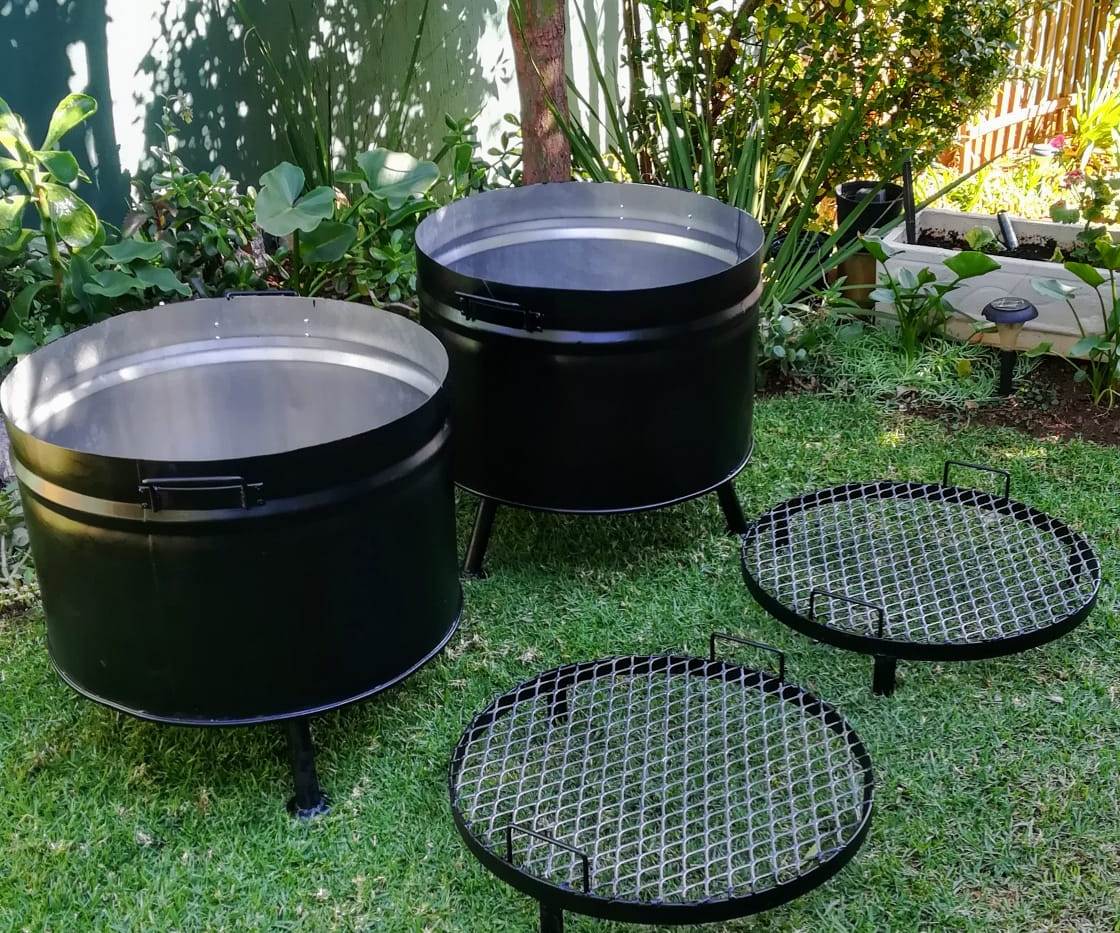 Half Drum Boma with coal grid inside drum and on legs
