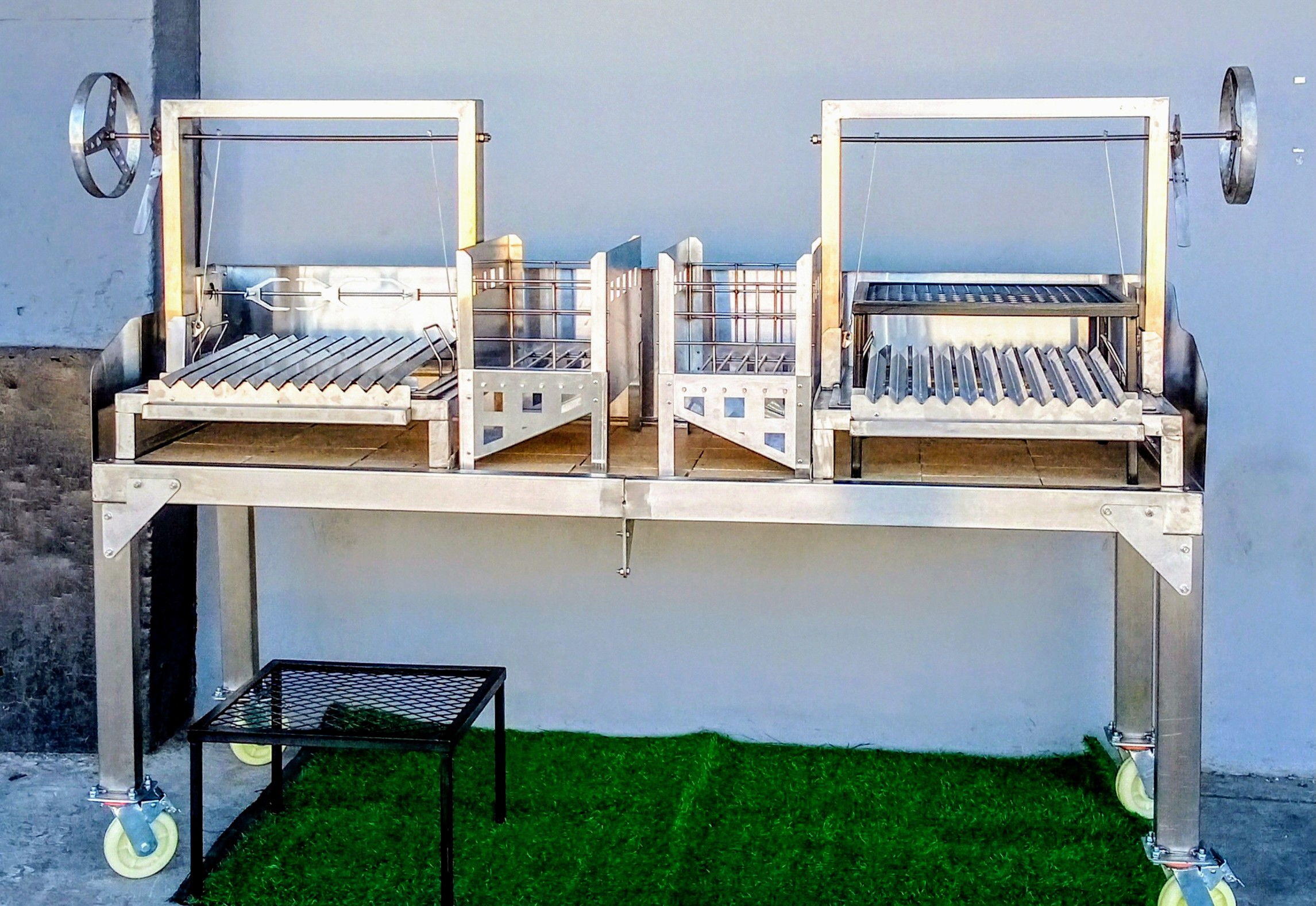 Shalati Double Argentine Braai, Double Coal Box, Double Electric Rotisserie. 1,7m (l) x 600mm (w). Wheel and Cable adjustment for V shaped Grid ( Heavy Duty)